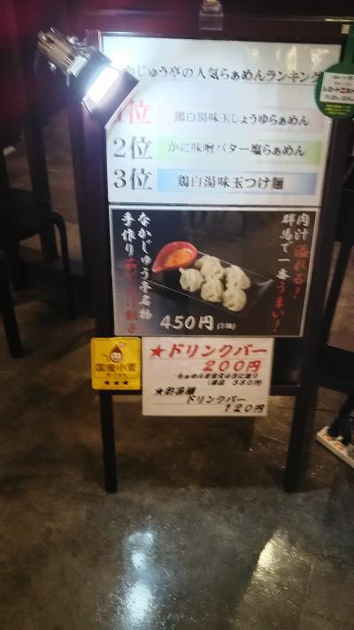 高崎オーパの6階にフードコートにあるラーメン、高崎市内に何店かあるうちの一つと思われる。食券の販売機は現金のみなので頼むとWAONでも払うことができる。