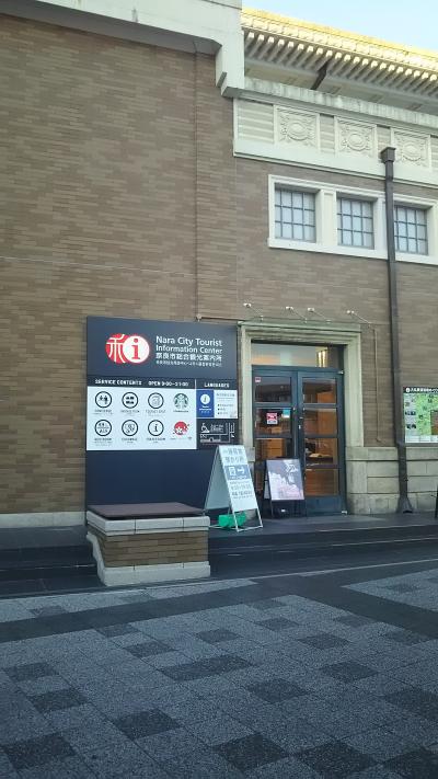 高架になった新しいJR奈良駅のとなりにある。駅改札をでて階段をおりた隣にあるインフォーメーションセンターで旧駅舎のようなくり。店内は広く世界中から観光客が質問をしている。スターバックスコーヒーも同居しているのでコーヒーまでのんでリラックスしてから観光に出ることができる