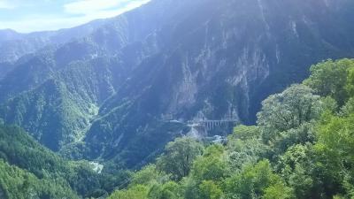 熊本の阿蘇にも同じな名前の見晴らしの良い展望スポットがあるがこちらは深い深い谷を見下ろす高い高い山の上にロープウエイで登って見える。なるか下界に黒部の湖とダムが一望。こんな素晴らしい展望台はここだけ。天気が良ければ最高
