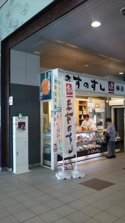 JR高岡駅の改札横にある駅弁コーナー。色々な駅弁がありやはり有名な鱒の寿司がお奨めとか。メインの弁当は11時頃に届くらしく開店後はあまり品数がない。お一人様向けにちいさなカットされた鱒の寿司があり仕方なく購入、確かに旨いがやや高め