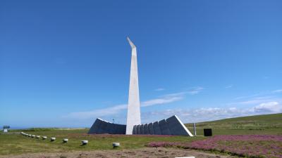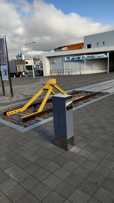 近代化されガラス張りのきれいな稚内駅舎からさらに線路が駅前の広場まで延長されて車止めが先端についています。最北端のレールの終点がここ、JRで稚内駅を訪れたら簡単に観ることができます。郷愁を感じるモニュメント