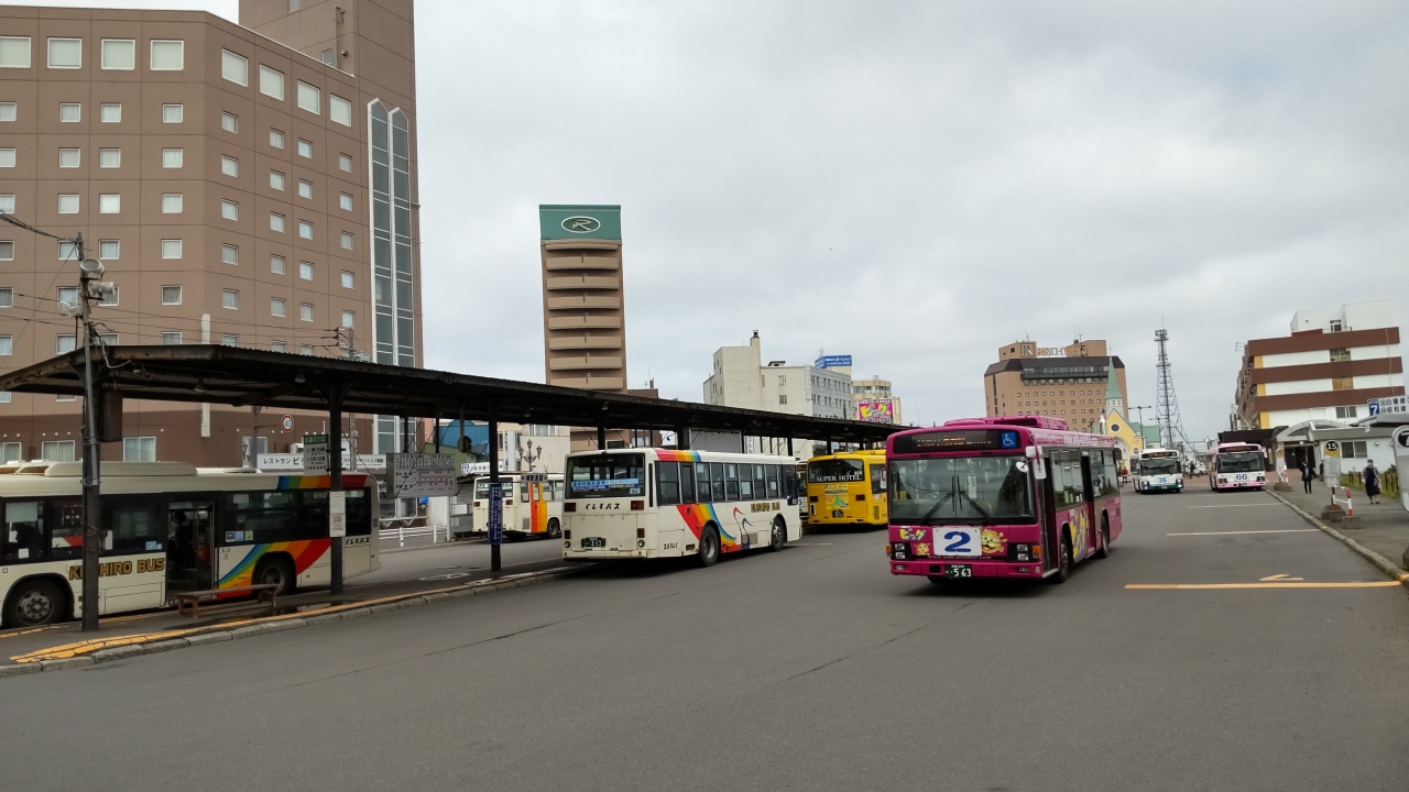 駅舎をでると左側にたくさんのバスがならんでいてその奥に