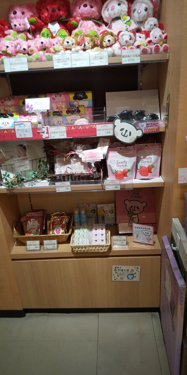 JR小山駅改札口近くにある栃木県しもつけ地区の名産品を扱うショップです。東北新幹線に宇都宮線や水戸線に両毛線が乗り入れて利用客も多い駅で各地に向かう鉄道利用客には便利な店で栃木県のアピールにも一役買っている。イチゴのとちおとめを使ったチョコレートはお土産に最高