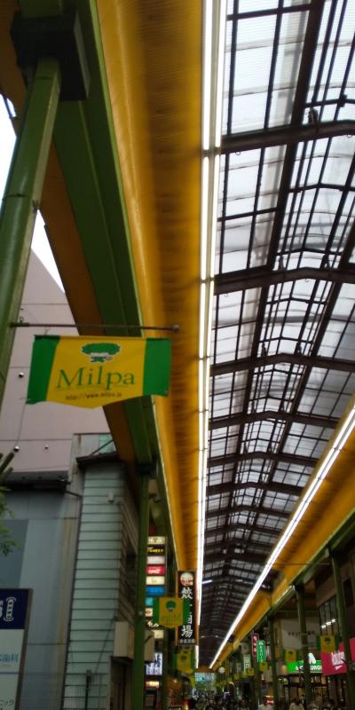 JR京浜東北線の大森駅から徒歩で3分くらい離れた昭和の匂いが色濃く残るエリアにある屋根付きのアーケード商店街。1980年代後半にカラー舗装がされミルパとは一般公募で名付けられたそうです。雰囲気がよくレトロな商店街に携帯電話ショップみたいな今時の店のミックス商店街。