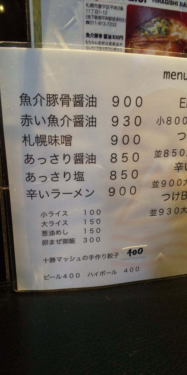 かなり旨いラーメンです。札幌では珍しい魚介系を得意とするメンエイジの平岸ベースは住宅街にあり欠点は駐車場が少ない。近所にスーパーマーケットがあるのでそちらに停めるのがベター。魚介スープが麺に良く絡む旨いラーメン。コテコテの札幌ラーメンとは違います