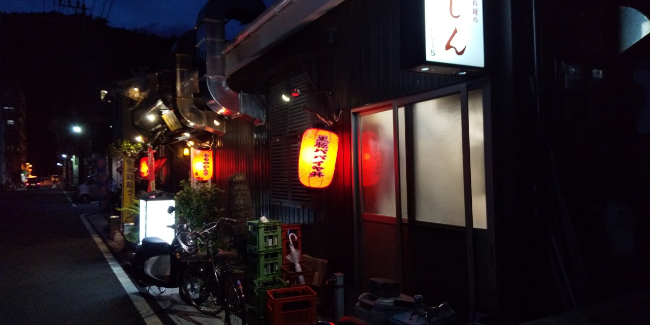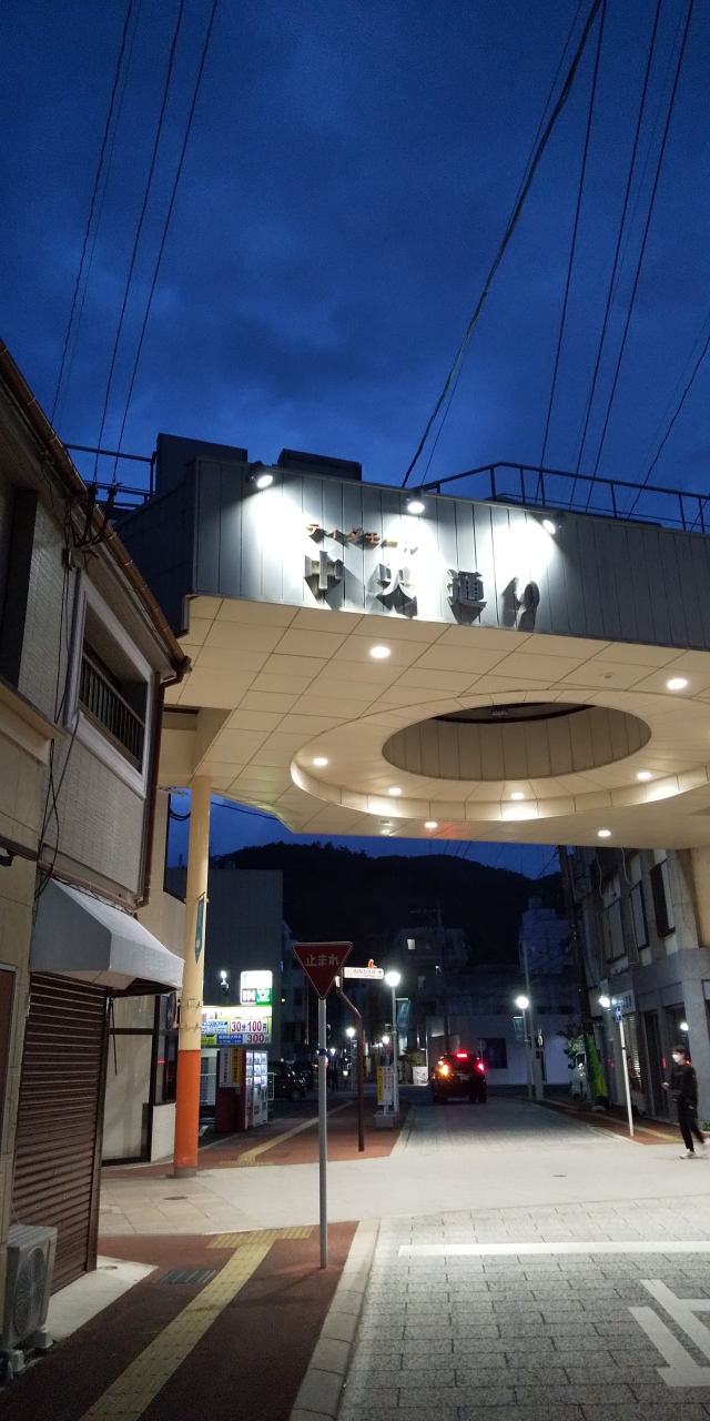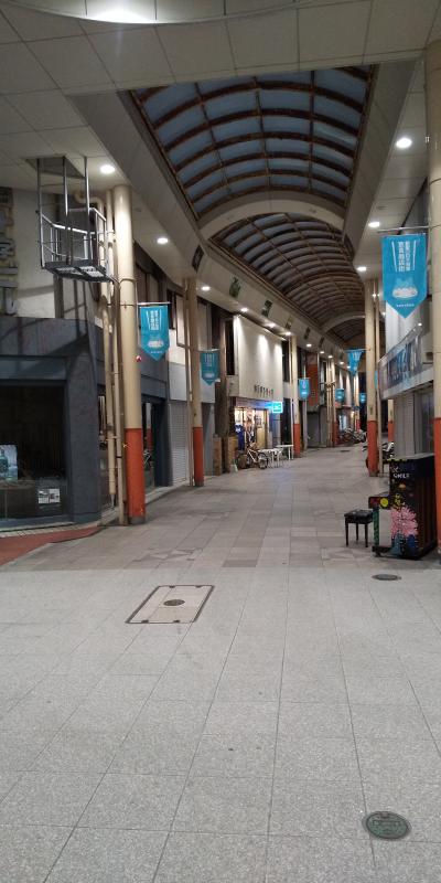 シャッターも閉まっている店が多くあまり人通りもない割と寂しげ商店街で地方都市ではよく見られる光景。裏路地には酒を出す飲食店も多い- 旅行時期
