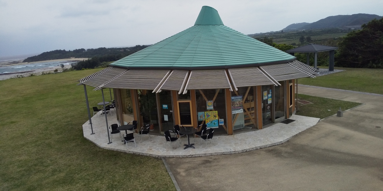 奄美空からも近い奄美大島北部のあやまる岬にぽつんとあるカフェとお土産ものを扱くお店です。あやまる岬の駐車場にあり海を見下ろす高台の丘の上にあります。