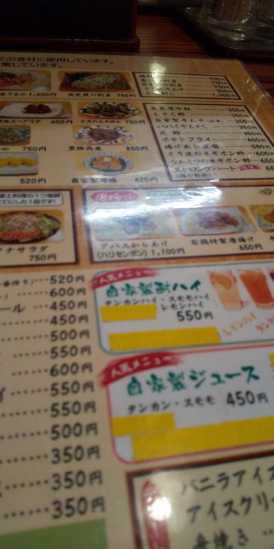 この居酒屋は子供連れは8時以降断ると掲示してあり理由は”タバコ”だそうです。確かに居酒屋に子供は相応しくないのですが非喫煙者からするとたばこを排除してもらいたいのですが島人は喫煙者が多くカウンター席でのプカプカが気になり