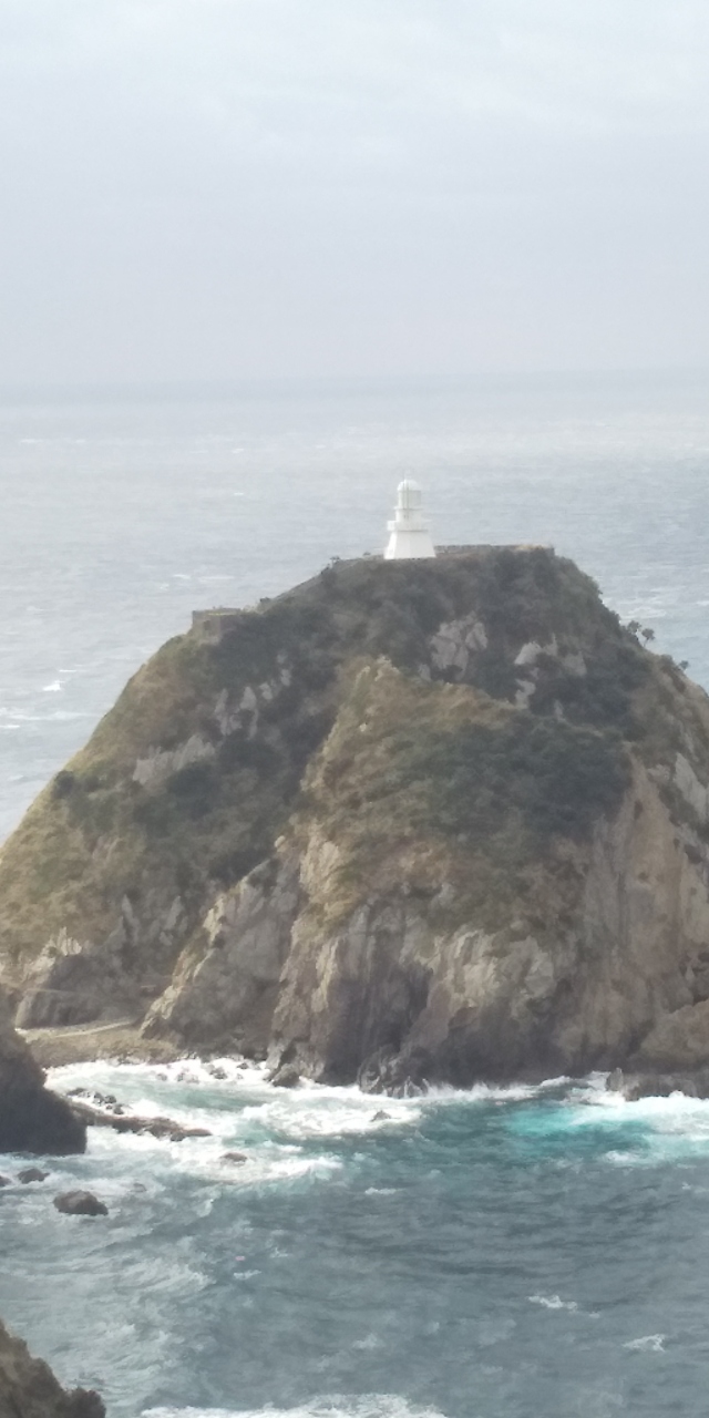 岬の先端に立派な展望台がり、灯台が少し離れた島にありその灯台守の宿舎跡地や神社など