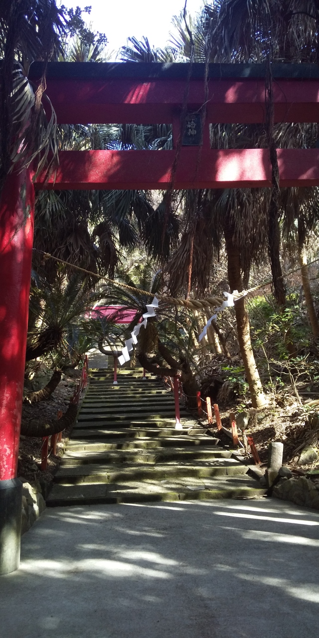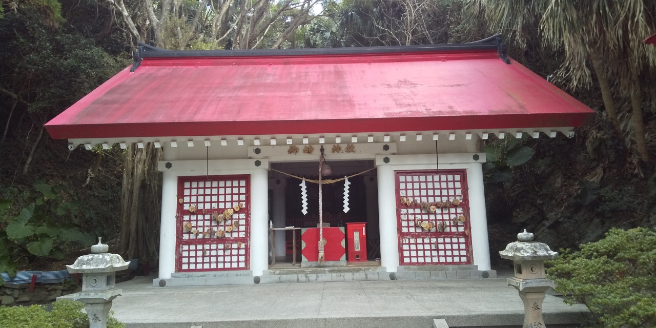 佐多岬の観光案内所前に車を停めて岬を目指して歩いていると神社があります。まさにパワースポット神社ので縁結びの神様としても有名だそうです。岬めぐりの際は参拝したい神社- 旅行時期