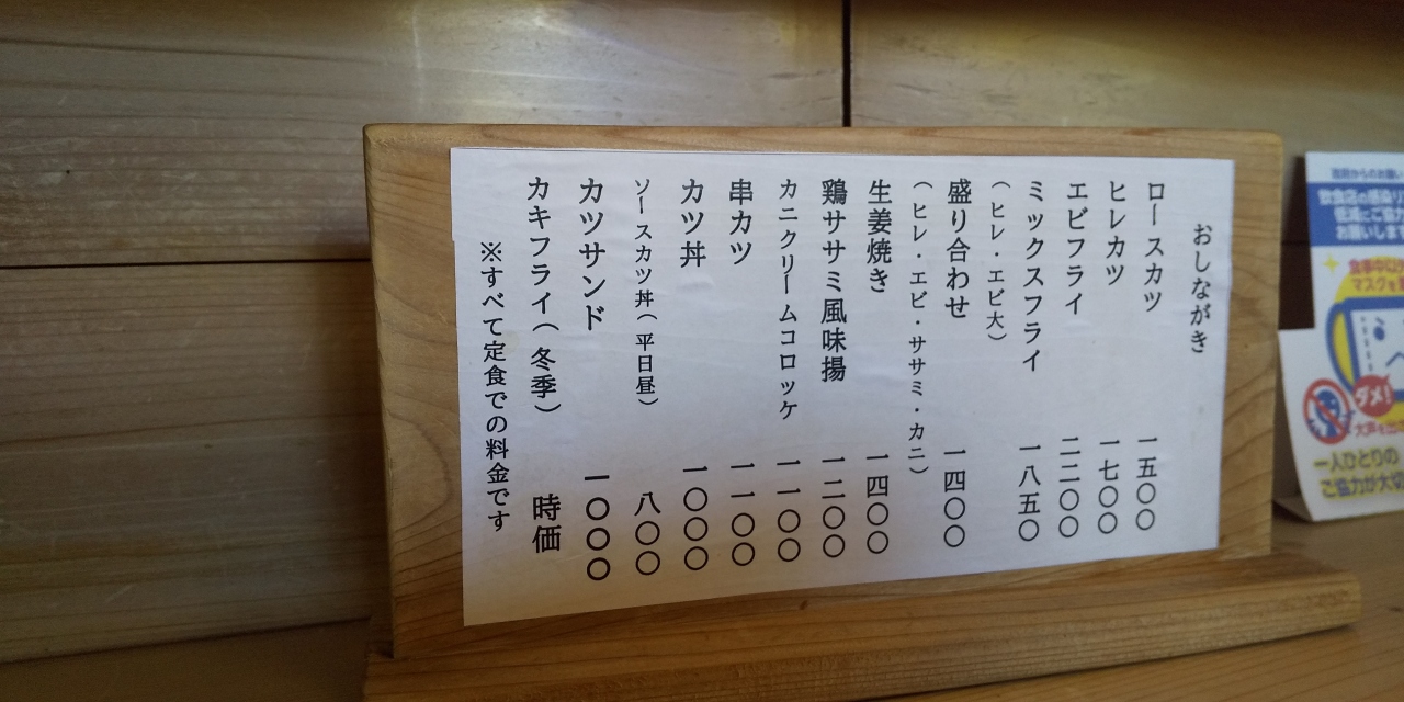 とんかつがメインですが冬季間はカキフライなんかもあるようです。