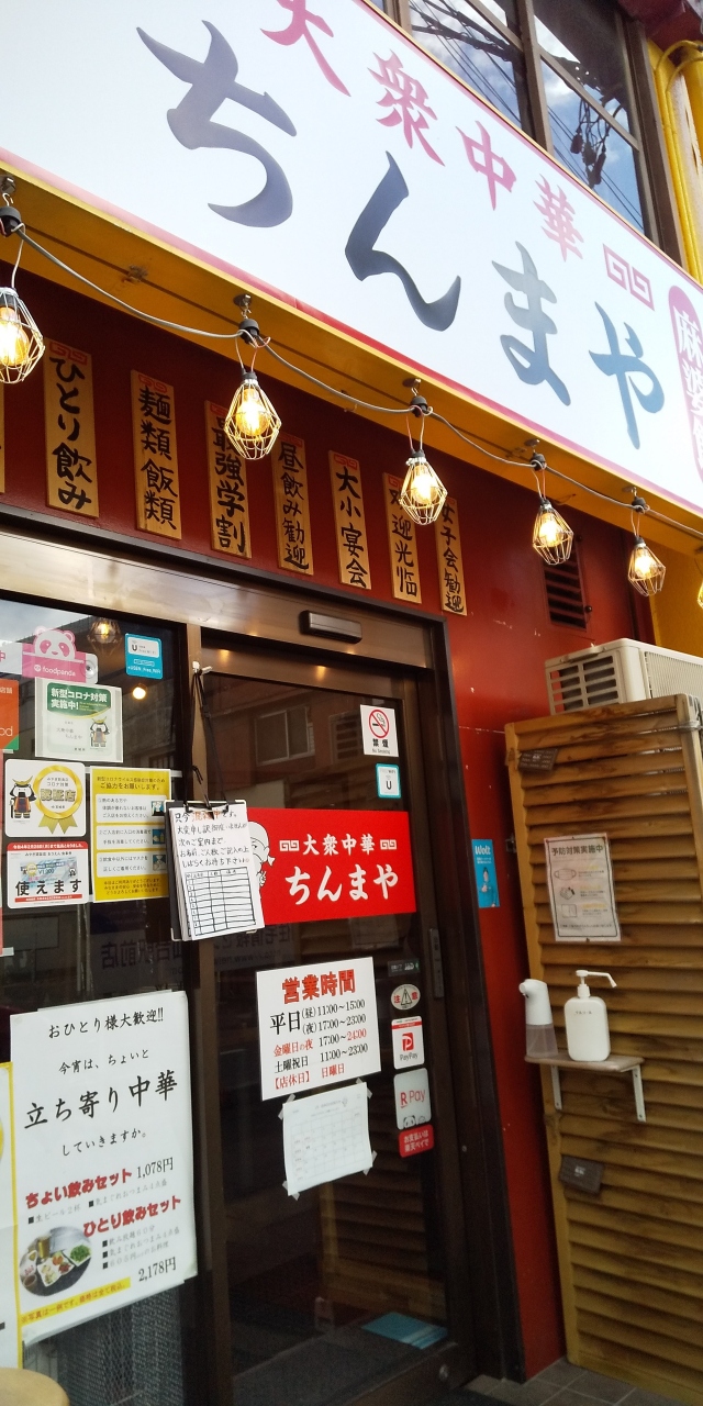パソコンショップにバーやラーメン店が並んでいます。派手さのないあまり目立たない店で観光客のゆくところでは無さそう- 旅行時期