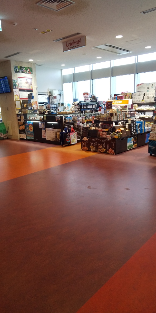 南ぬ島石垣空港の出発ゲート前にあるJAL系列のお土産やさん、旧南西航空の頃からあり沖縄県の空港によくあるお店です。おにぎりやお弁当はお隣の店より種類も数も多く出発点前の食糧調達ができますがお土産に関してはあまり取り揃えがなく値段も高めです