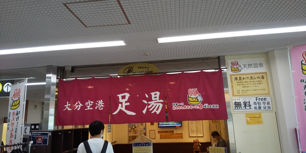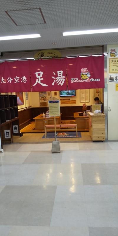 おんせん県を名乗る大分の空港だけあって空港ターミナル内に比較的大きな足湯コーナーが一階到着ロビーのはずれにあり誰でも足湯につかることができます。