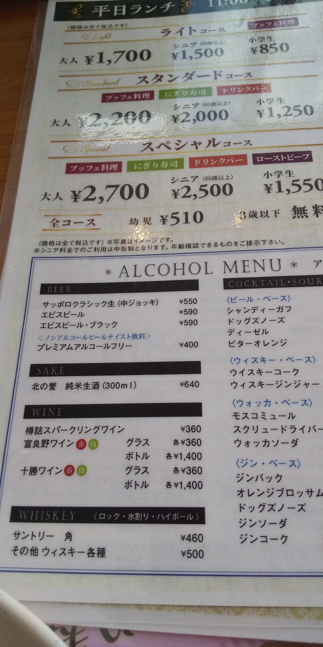 札幌大丸店の一番上の階にあるレストラン街の店でランチタイムは行列のできる人気店です。和洋中華なんでもあるので色々なメニューを少しずつ楽しめます。平日ランチは1700円から、寿司とドリンクバー付で2200円からになります。大きな窓からは札幌駅前のビルがよく見えるので夜もいいかも