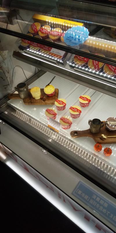 冷蔵庫にはいったプリン見ながらを品定めができます。