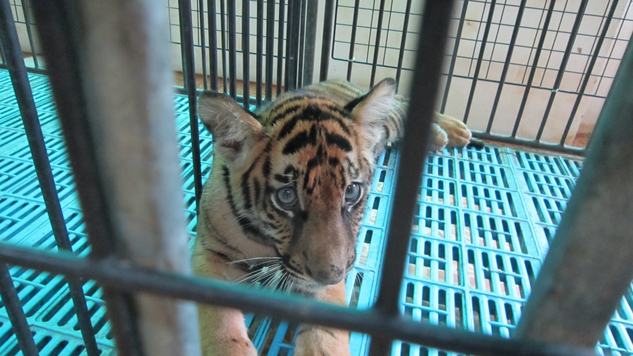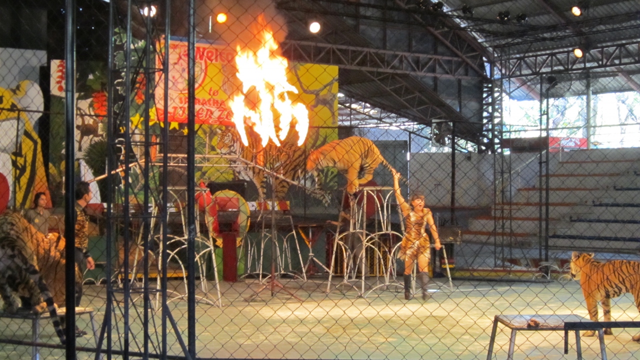 トラのエサが落ちる仕組みになっているエサやりもあります