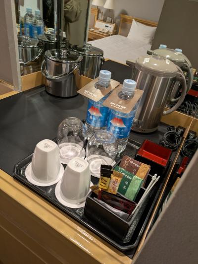シングルルーム、大浴場とフリードリンクバー付きの素泊まりで5千円台は今どき有難い価格設定です。これで雨アメニティをもっと揃えろなんて口が裂けても言えませんよね。