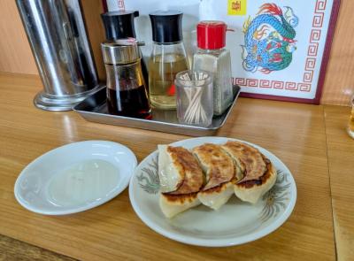 自分はチャーハン(醤油)と餃子3個のセットにしました、この店はチャーハンが有名らしいので。