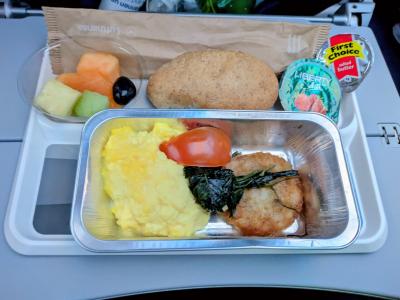 計4回機内食食べましたが、最近質の向上が目覚ましい各社の機内食に比べ、残念なほど不味かったです。量も少なく、「ショボ!」と声が出てしまいました。その度に使うテーブルは蝶番から手前に傾いているので、トレイが滑ります。これは私の席のみでは有りませんでした。当然2便ともです。