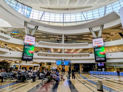 国内線は主に搭乗口のコンコースに飲食店が並び、店頭で客引きするスタッフも居たりしてワイワイガヤガヤな雰囲気でした。