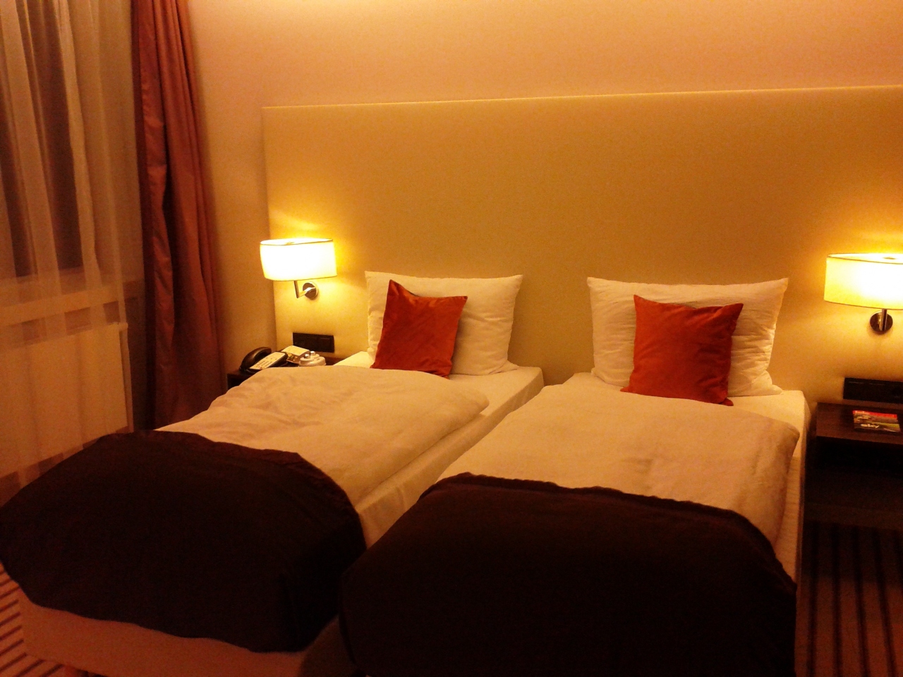 フリードリッヒシュトラッセの駅前にありリッチは申し分ない。駅前なのでスーパーも近く、また博物館島へも徒歩15分くらい。ホテル自体も比較的新しい。ただ、交通量が多く部屋の位置によっては騒音がやや気になる。ネット予約でツインがちょうど100ユーロだった。