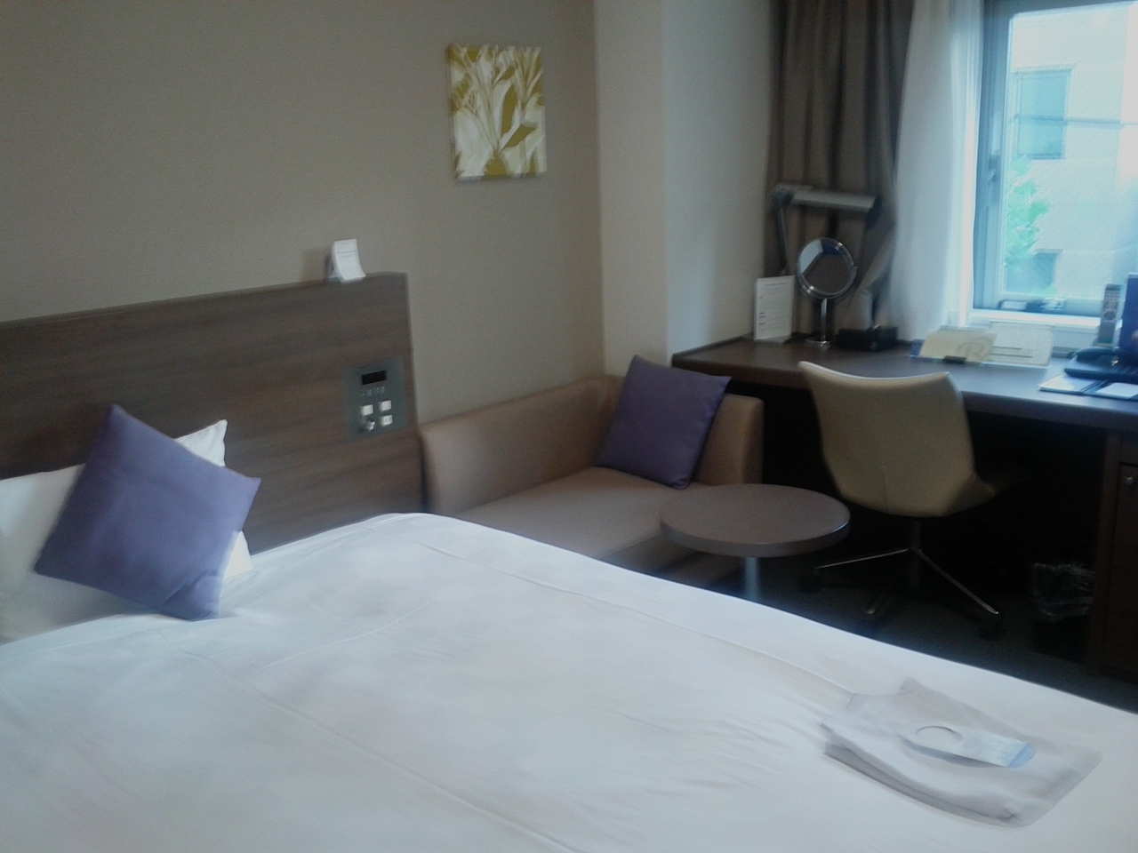 ネットで予約して、このチェーンホテルに初めて宿泊した。とにかく便利、でも静か。1Fにコンビニも入っています。客室は広く、ソファも有ります。朝刊、コーヒーメーカー、美味しいドリップコーヒーすべて無料。部屋には、無線、有線のLANが配置されており、もちろん無料です。