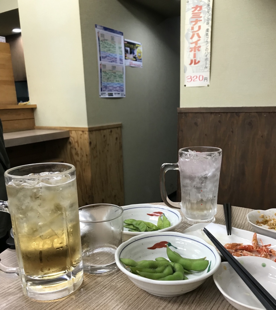 おつまみは380円とか。普通です。安いなーと思いながら、二人で7、8杯飲んで結局5000円超え。