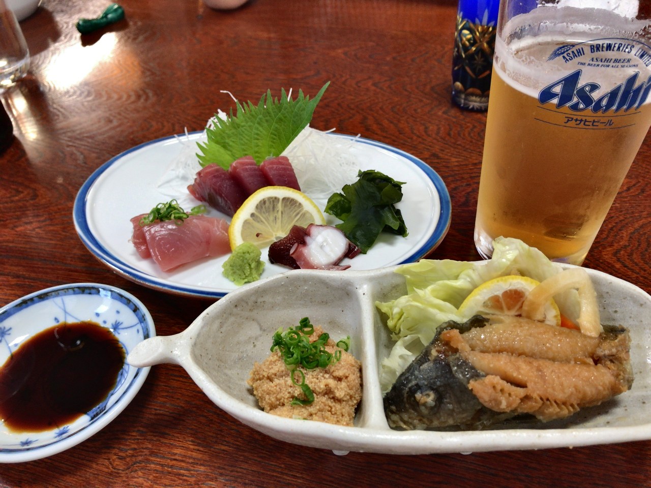 3種類のお刺身盛り合わせ。