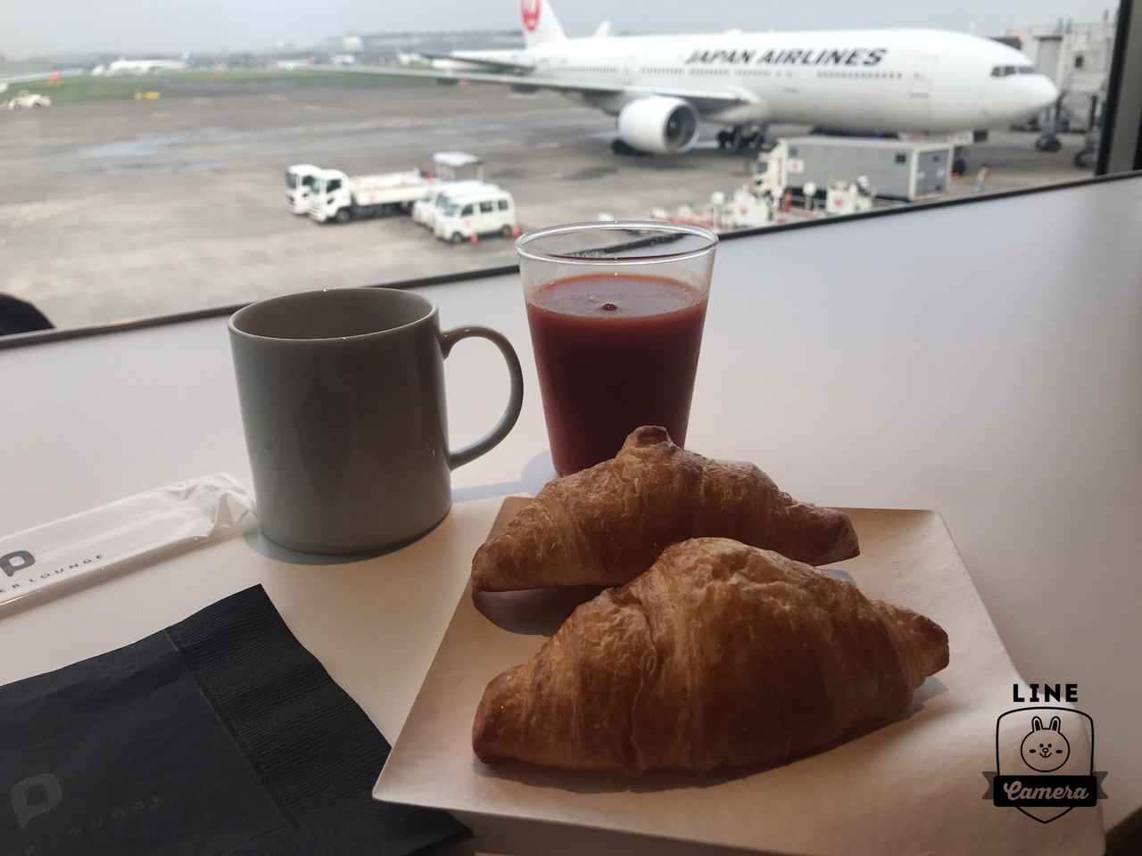 クロワッサンと飲み物の提供(フリー)。クロワッサンは絶やすことなく出してくれます。