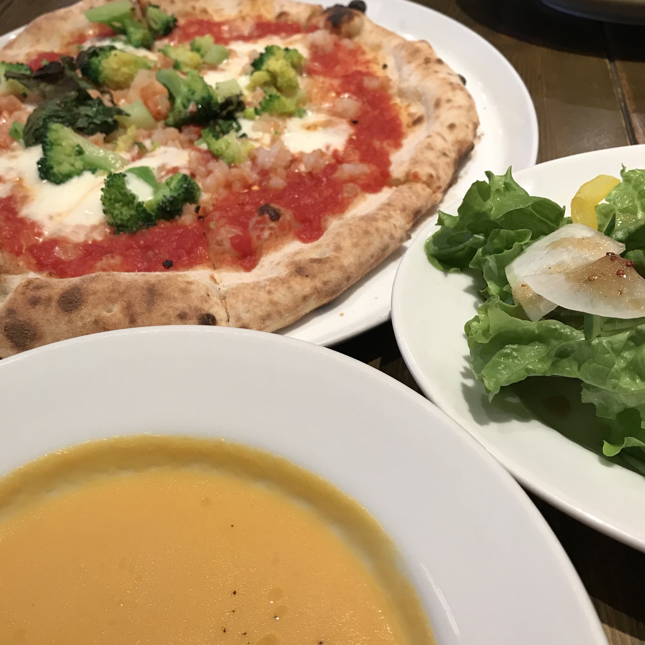 ランチメニュー、ピザとパスタと5種類くらいずつありました。1000円から1400円くらい。