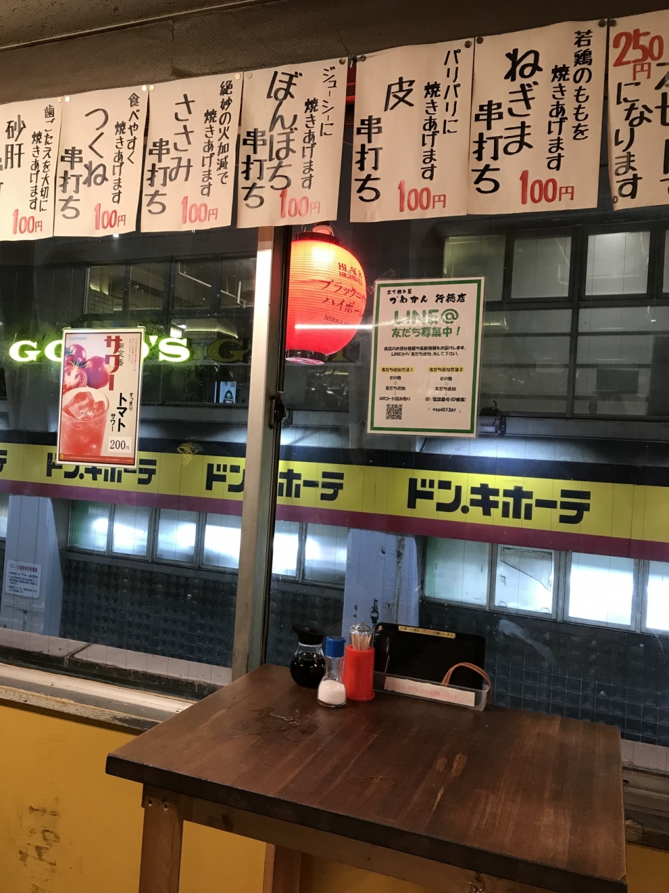 100円焼き鳥もおいしかったです。好きな焼き串3本で250円。