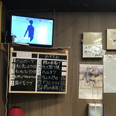 店内は広め。大きなテレビ画面があって一人で気軽に飲み食いできそう。