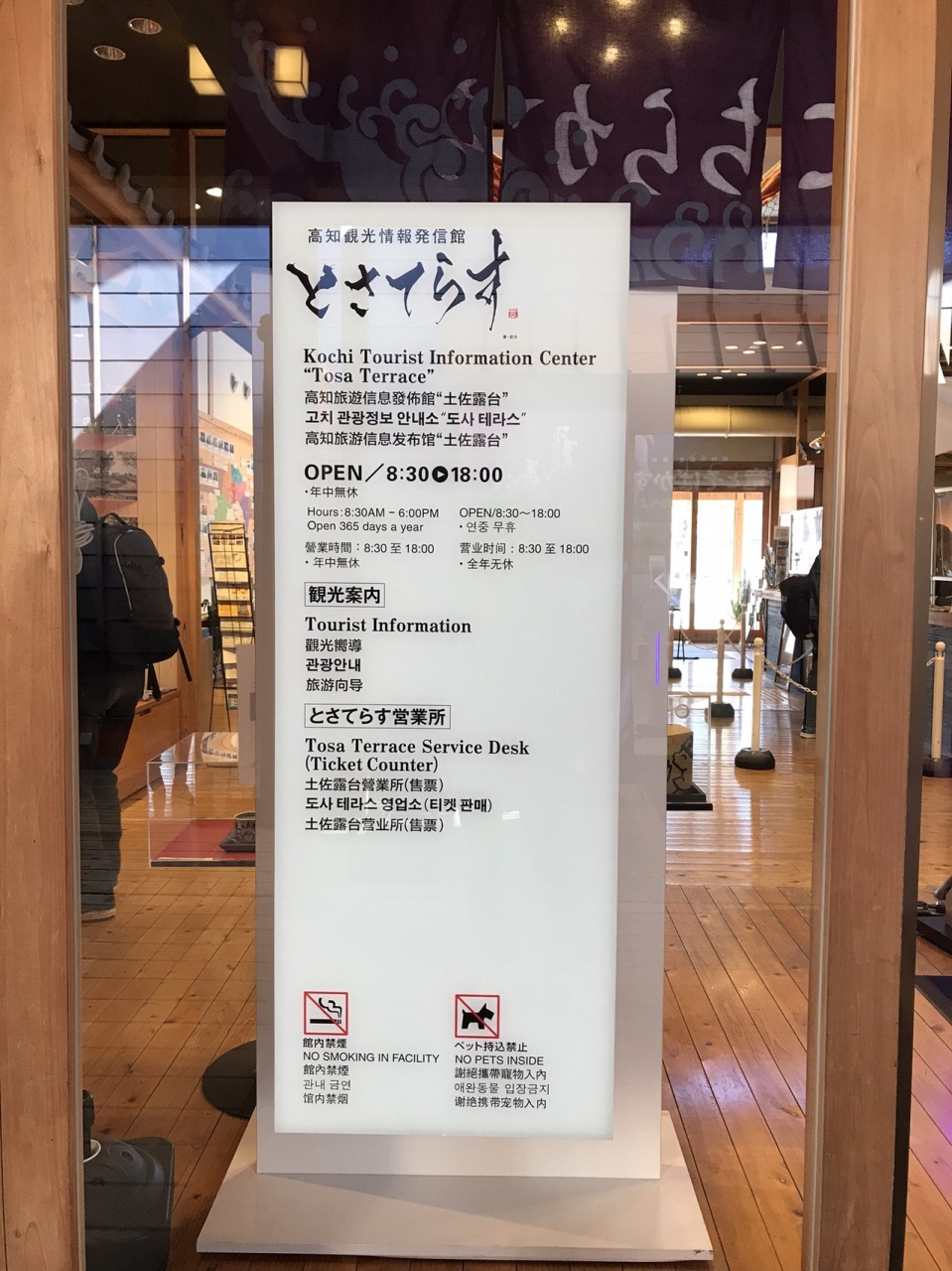 高知駅前の観光案内所の奥にあります。立派なので有料施設かと思い躊躇しましたがなんと無料!無料だけどきれいです。
