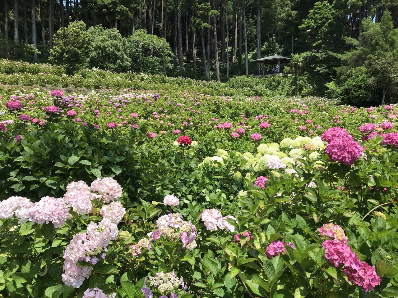 斜面に植えられたあじさい。散策路も整備されていて満喫できました。