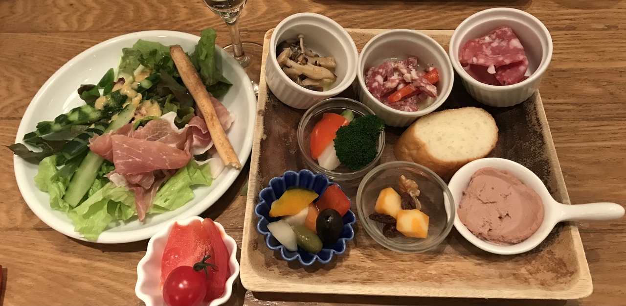 あと前菜盛り合わせ。生ハムとチーズが美味しかった。