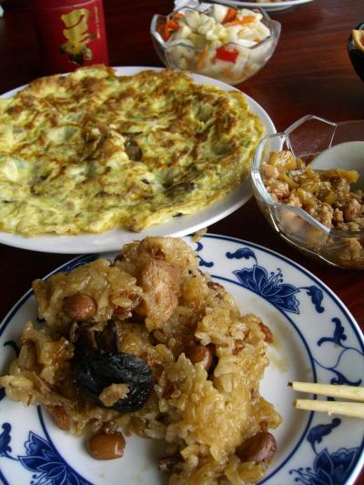 前日が節句だったそうで、ちまきが出ました。手前のごはんがそうです。葉っ...