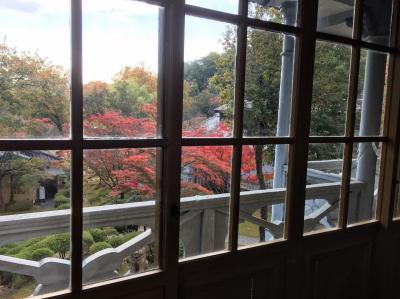 ちょっとかわったところで、市内唯一の明治建築の西洋館であり、国の登録有形文化財の井上家西洋館があります。紅葉の中、水色の外観がとても映えていました。