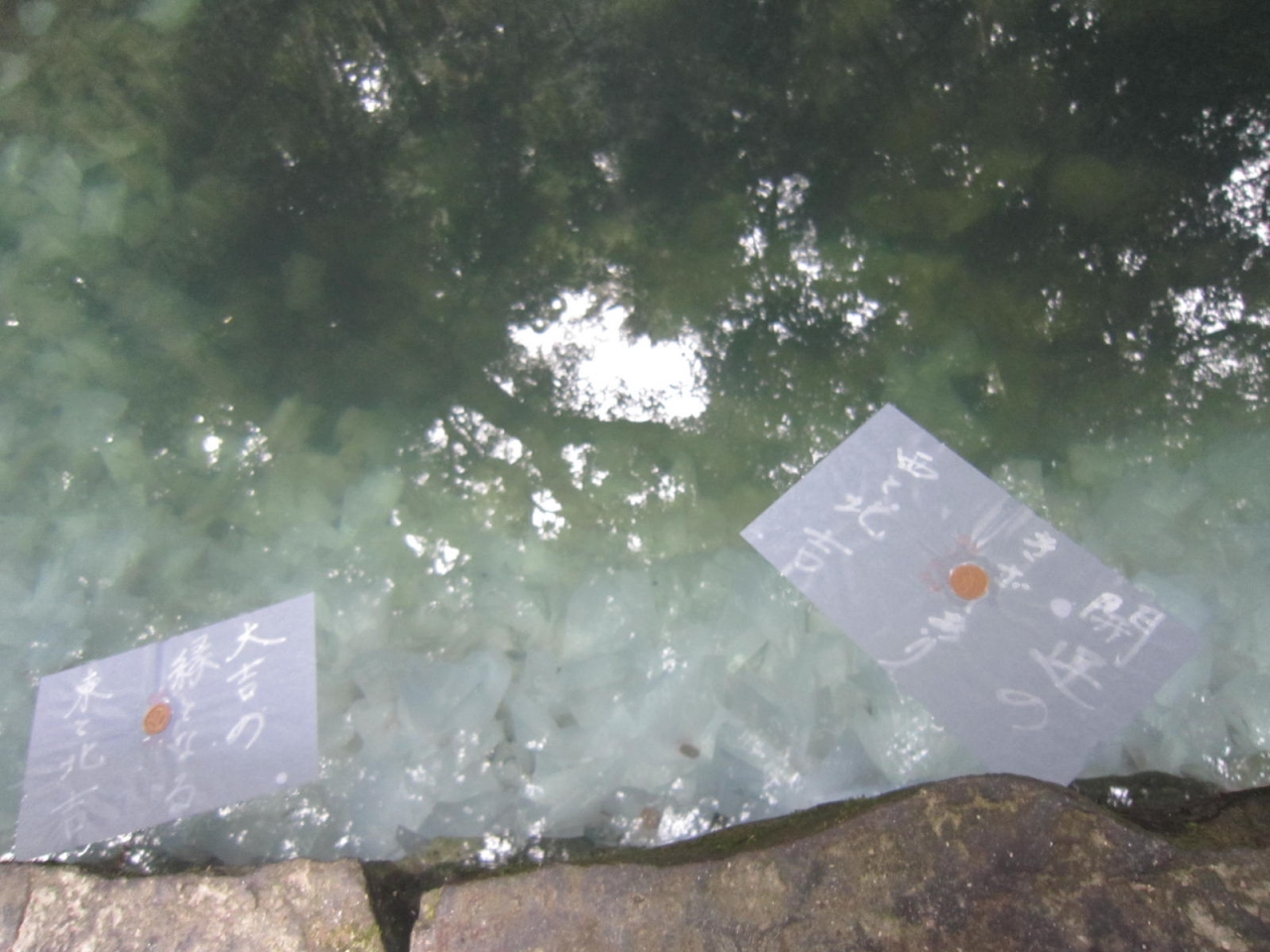 用紙を購入して池に浮かべます、早く沈めば出会いも近く、近くで沈めば近くの人という占いができます。
