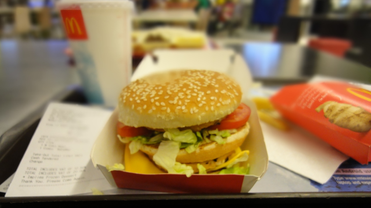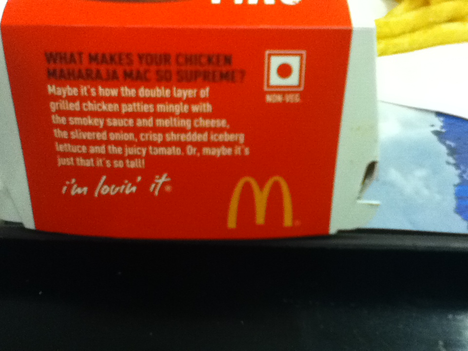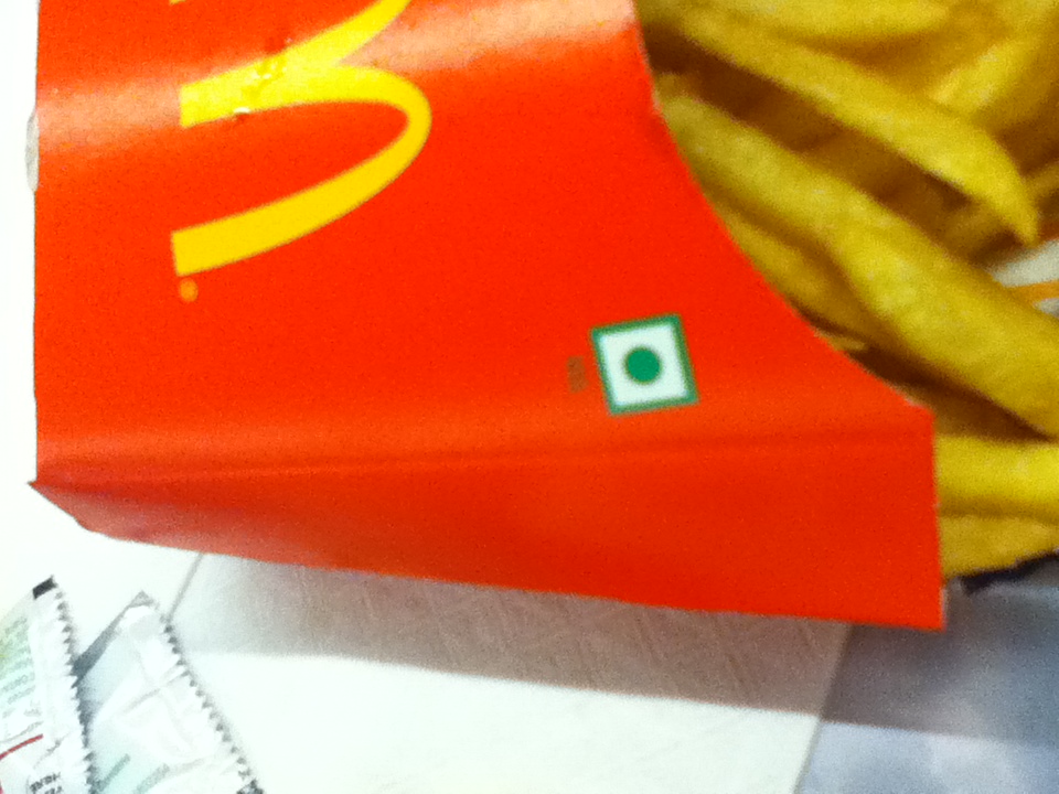 箱についている緑色のマークはベジタリアン用を表すようです。(マクドナルドだけではなく他食品も共通)- 旅行時期