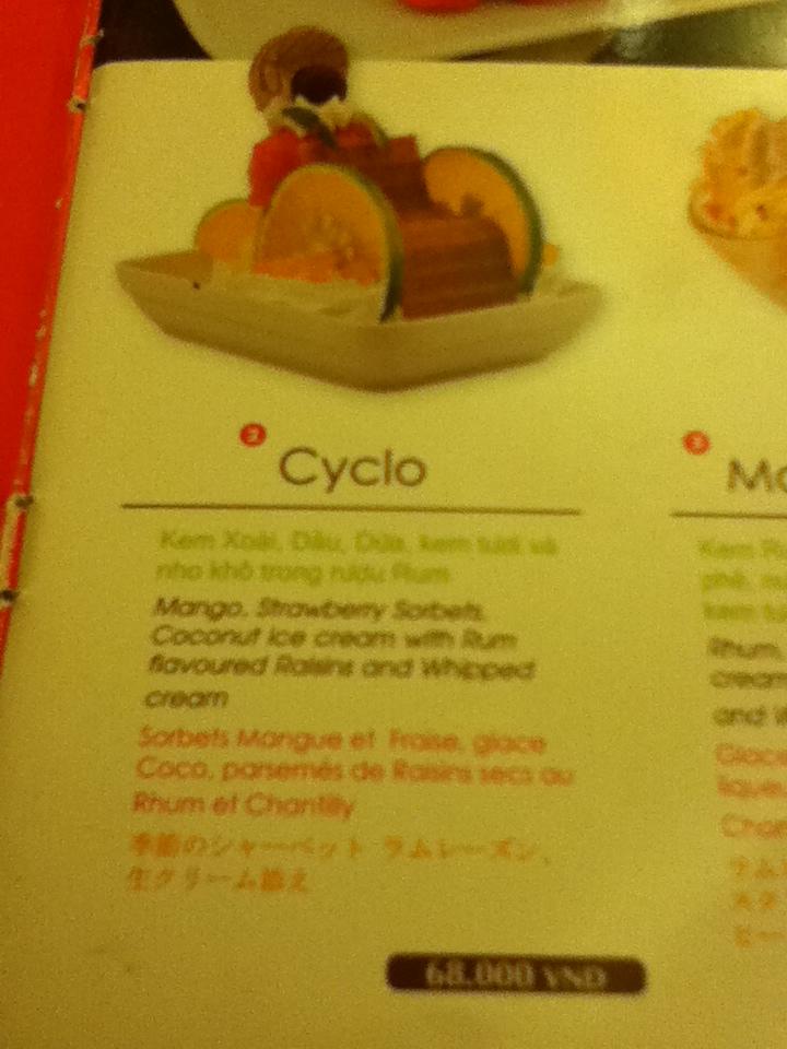 写真をつけたシクロのアイスを注文したかったですが、一人旅でおなかいっぱいだけだったのでやめときました。- 旅行時期