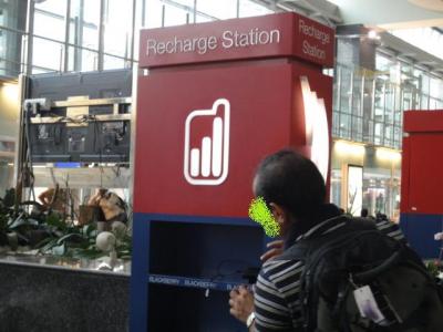 IT関係と思われるビジネスマンの人々でにぎわっている空港です。
