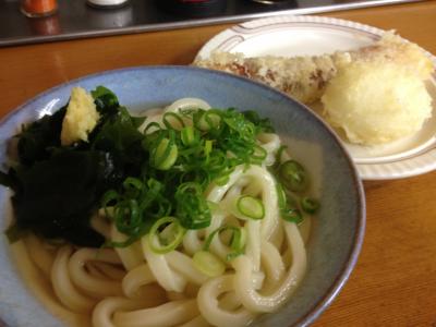 半熟玉子と竹輪のてんぷらとかまあげうどんで320円!安いです!- 旅行時期