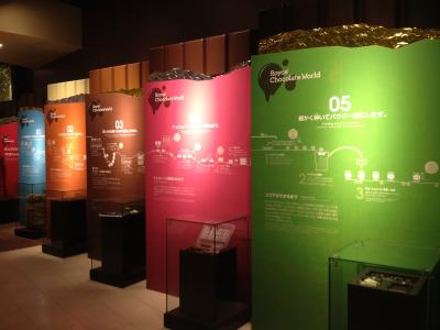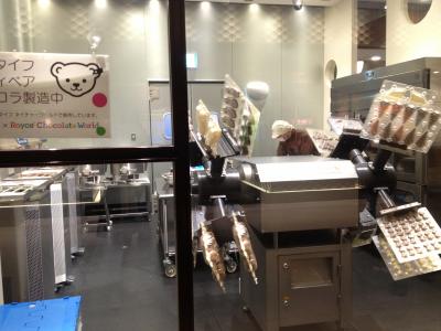 チョコレートの製造工程の説明パネルや実際にチョコ製品を作成している過程(機械)が見れます。