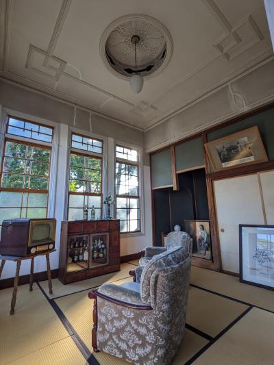 奥座敷の天井には屋久杉が使用されていたり、中庭には回遊式庭園と洋館風の離れ(内装は和洋折衷のゲストルーム)があったりと、とても貴重な文化財を見ることが出来ました。