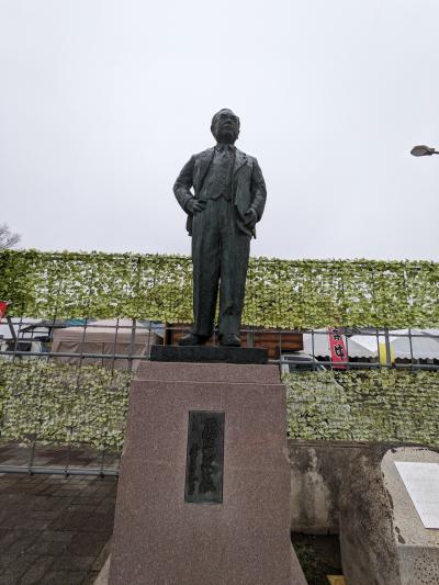 駐車場に車を停めて、すぐに目に入ってくるのは「下總皖一さん」の銅像です。