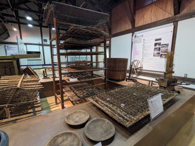お米農家の農具や足踏み水車、養蚕の展示がありました。