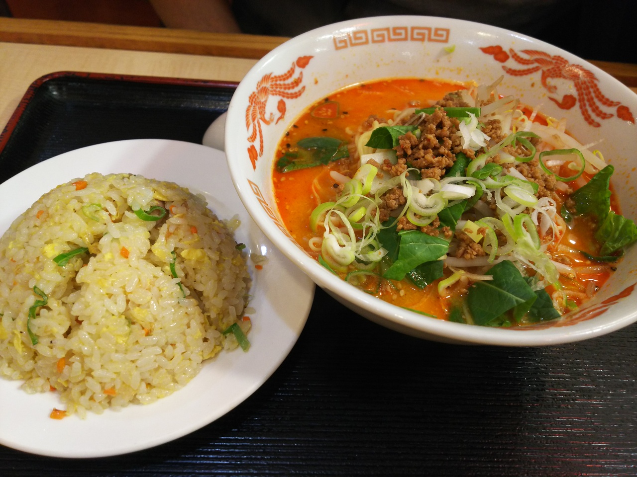 私は江南春オススメの「豚肉ともやしのピリ辛そば+水餃子セット」を注文。