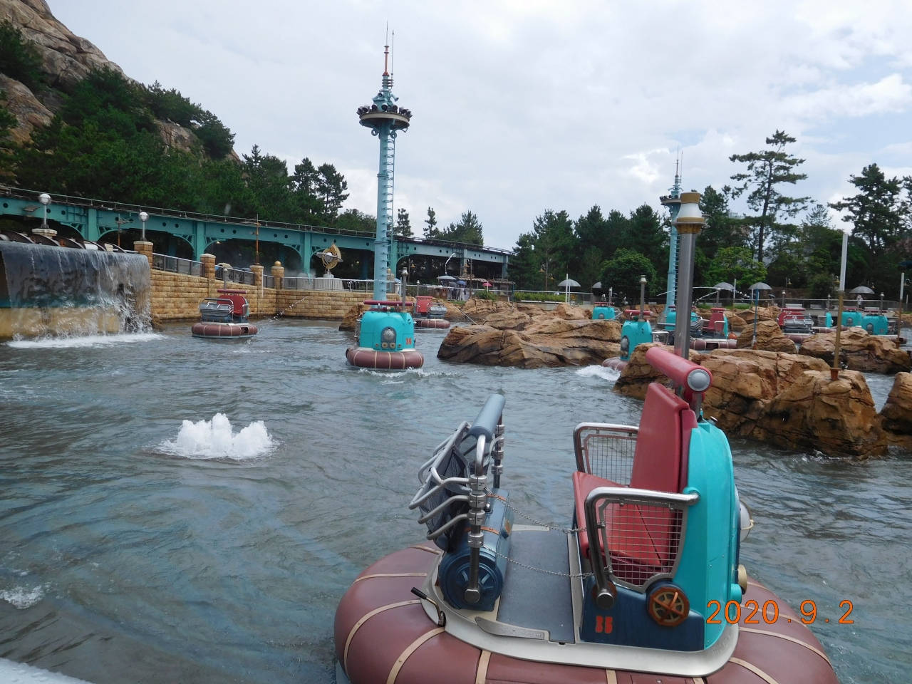 アトラクションを並ぶ列もソーシャルディスタンスを保つために前の方とは間隔をあけて並び・・・かなりの長蛇の列にはなっていましたが、サクサク進むのでかなり快適に遊ぶことができました。