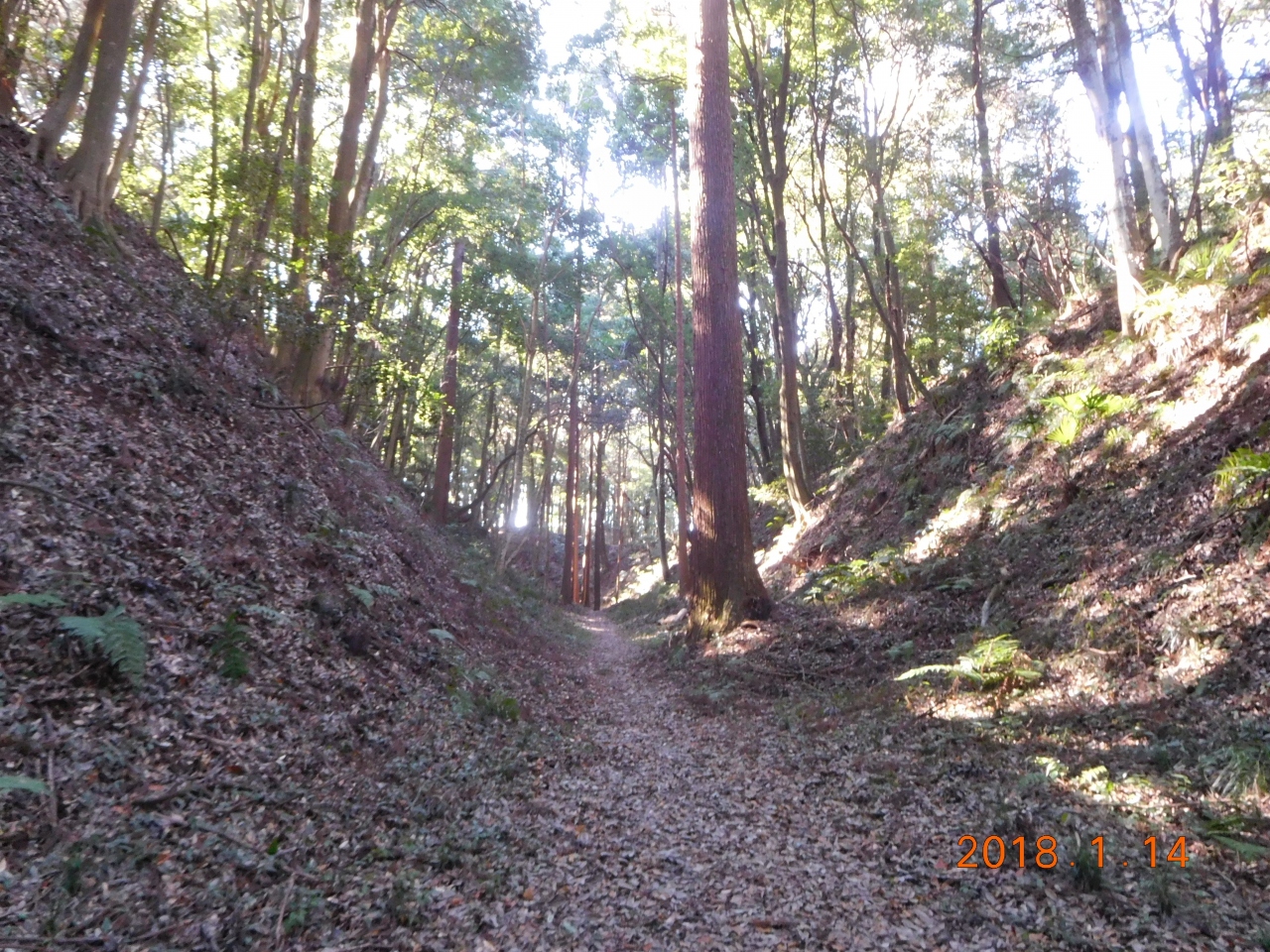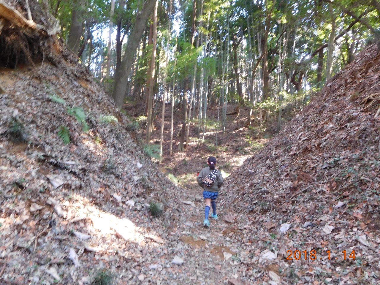 基本は空堀を進んで見学をします。当時もこの堀底道を通路として利用していたようです。